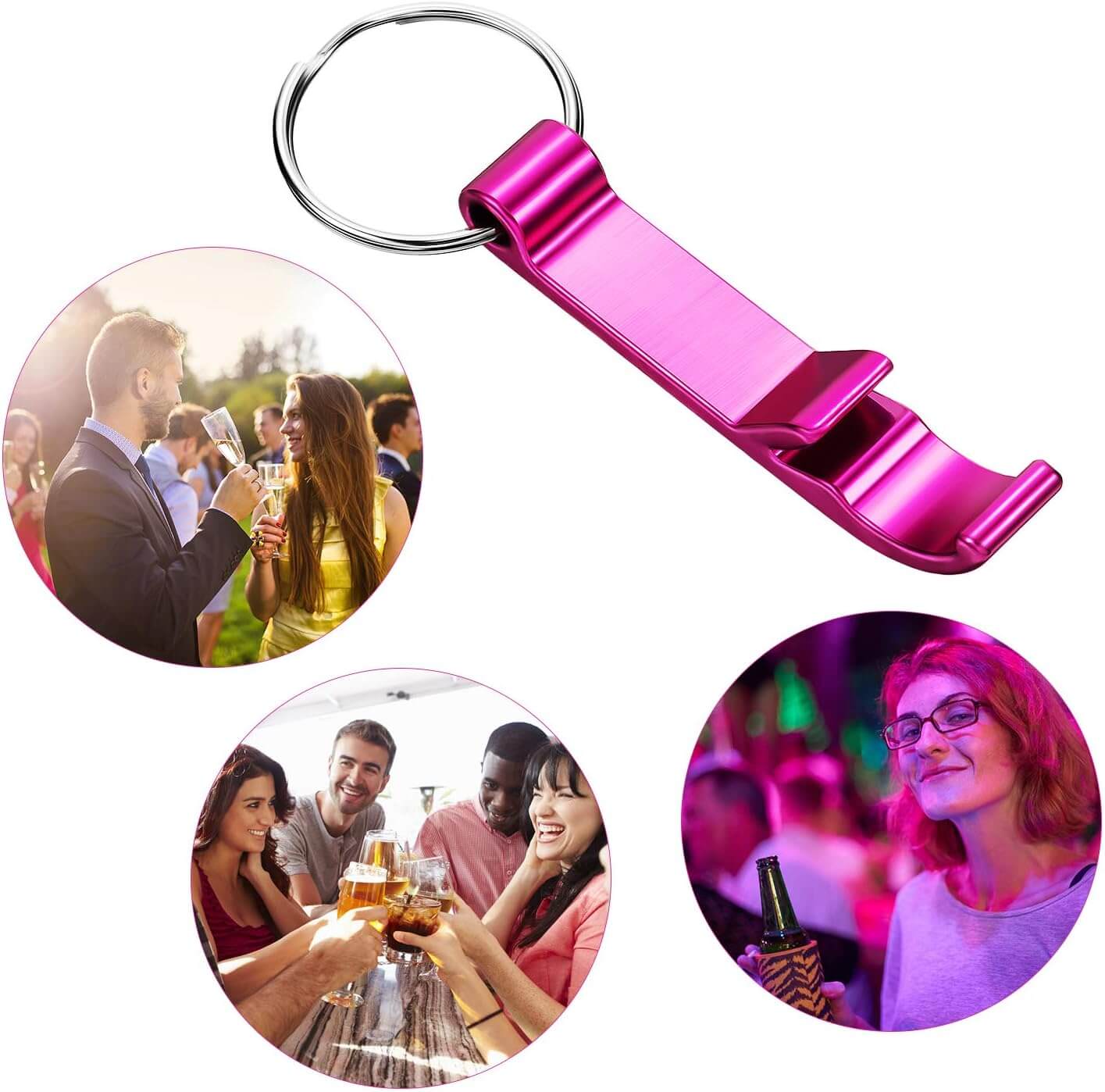 Lightweight,small size,easy to carry and use Each bottle opener comes with a key ring, it can be hung on your key chain directly. It is very convenient to carry.