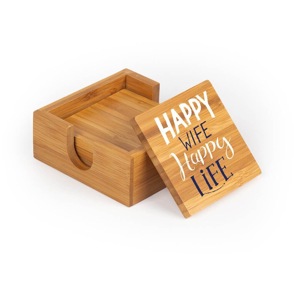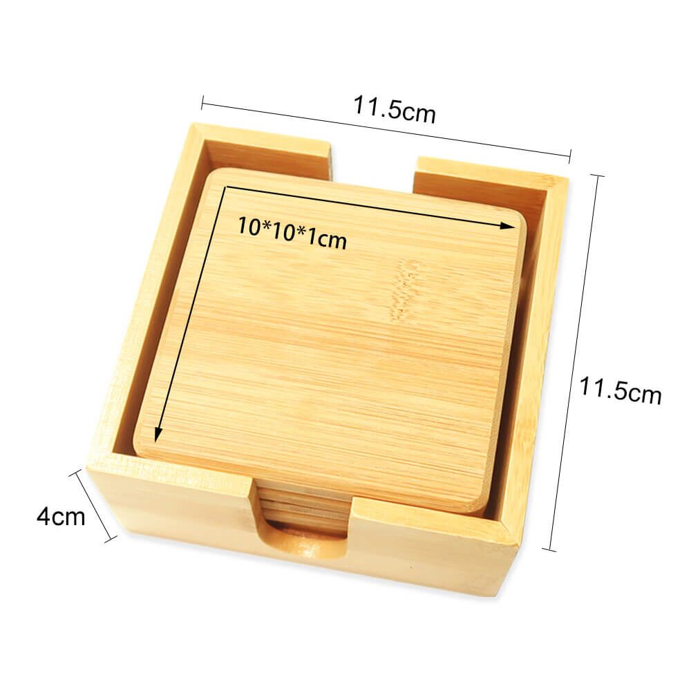 | Description | Bamboo Coaster Set W/ Holder |