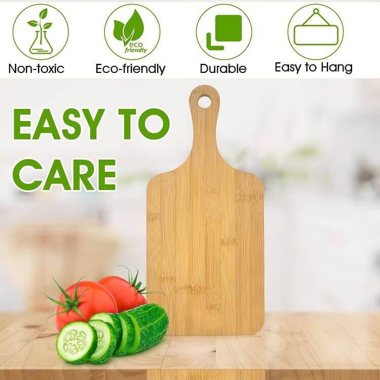A bamboo cutting board with a handle is a practical and versatile kitchen accessory. This type of cutting board is crafted from bamboo, a durable and sustainable material, and features a convenient handle for easy carrying and maneuvering.